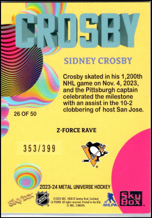 2023-24 Skybox Metal Universe #26 (of 50) Sidney Crosby Z-Force RAVE /399