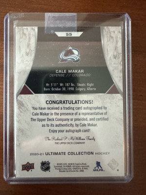 2020 Cale Makar Ultimate On Card Auto