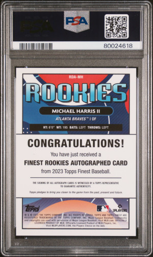 2023 Topps Finest Finest Rookies Design Variation Autographs Michael Harris II Green Wave /99 PSA 9