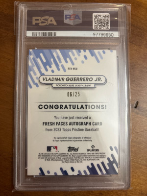 Vladimir Guerrero Jr Fresh Faces Auto Orange6/25 PSA 10