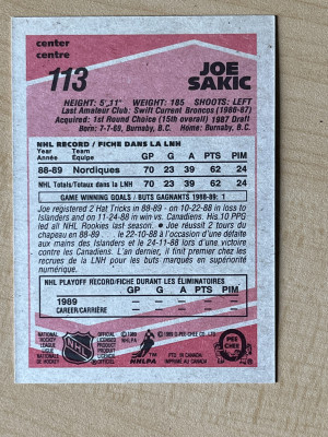 1989 O-Pee-Chee Joe Sakic #113 Base Set —VVCARDS—