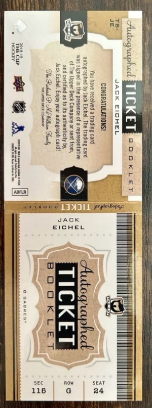 2018-19 Jack Eichel Upper Deck The Cup Autographed Ticket Booklet /11
