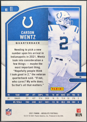 2021 Panini Absolute Red Squares #11 Carson Wentz Indianapolis Colts /499 [119|11]