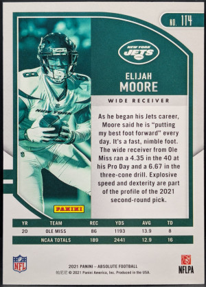 2021 Panini Absolute Red Squares Parallel #114 Elijah Moore New York Jets /499 [119|114]