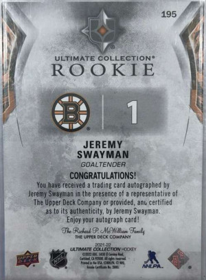2021-22 Ultimate Collection Rookie Jeremy Swayman /99