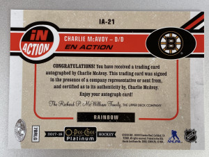 Charlie McAvoy 2017-18 Rookie O-Pee-Chee Platinum In Action Autograph SP