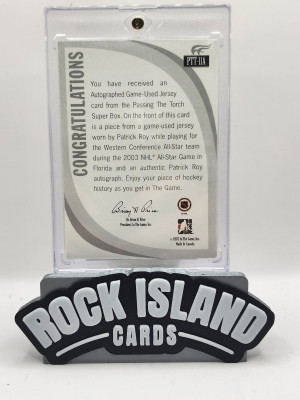 Patrick Roy 2005 In the Game Passing the Torch Game Used Jersey Mem Auto