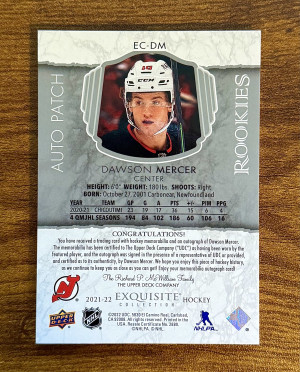 2021-22 Dawson Mercer Upper Deck The Cup Exquisite Patch Auto /18