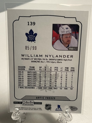 2022-23 OPC Platinum Arctic Freeze #139 William Nylander /99 Toronto Maple Leafs