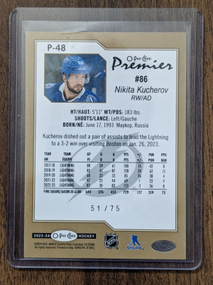 2023-24 OPC Premier Nikita Kucherov Diamond Rainbow Parallel /75