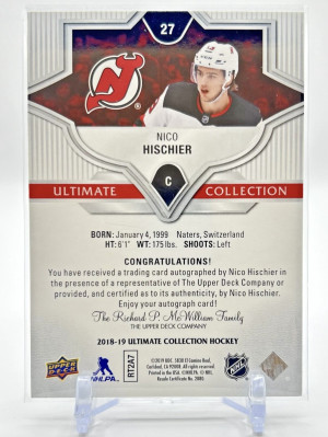 2018-19 Ultimate Collection NICO HISCHIER Auto 1/50 - BOOKEND
