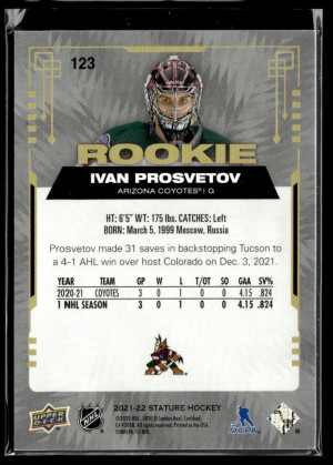 Ivan Prosvetov 192/399 Rookie Upper Deck Stature 2021-22 #123