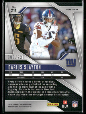 2024 Panini Prizm Darius Slayton #214 Blue Cracked Ice 086/230