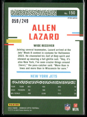 2023 Donruss Optic Prizm Allen Lazard #150 Orange 059/249
