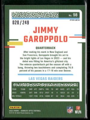 2023 Panini Donruss Optic Prizm Jimmy Garoppolo #98 114/299