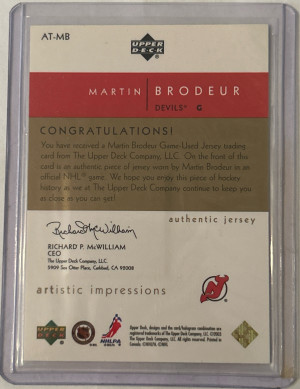 2003 UD Artistic Impressions Jersey Gold - Martin Brodeur /199