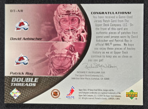 2003-04 SP Game Used Double Threads Patch /60 - Patrick Roy + David Aebischer
