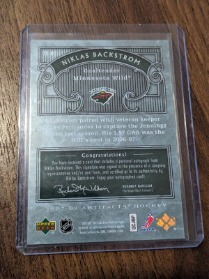 Niklas Backstrom Auto Facts Autograph 2007-08 Artifacts