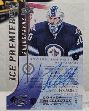 2018-19 Upper Deck UD Ice Signature Swatches Auto Mem Connor Hellebuyck /150