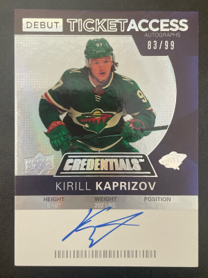 2020-21 Upper Deck Credentials Kirill Kaprizov Debut Ticket Access Autograph /99