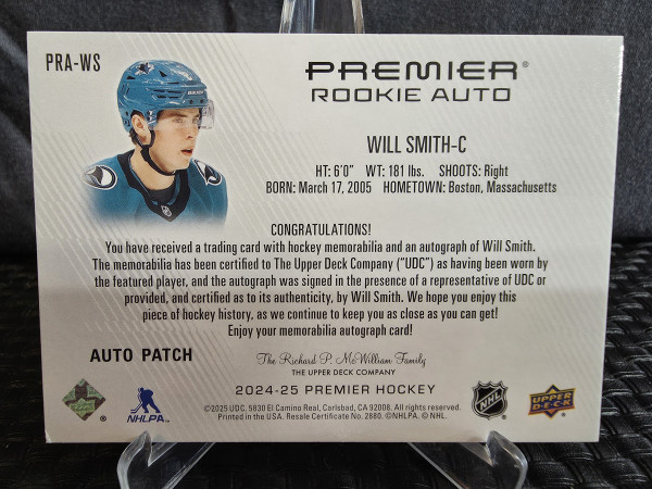 2024-25 Premier Will Smith Rookie Auto Patch /15 PRA-WS