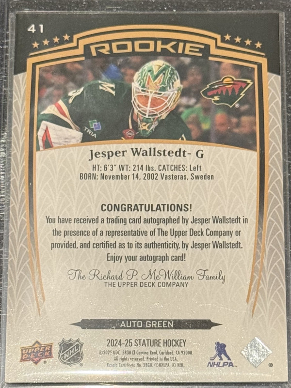2024-25 Stature Jesper Wallstedt Rookie Auto /199
