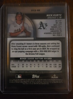 Topps Stadium Club Chrome Nick Kurtz On Card Auto