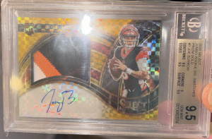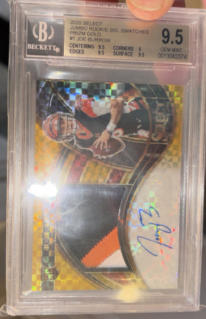 2020 SELECTJUMBO ROOKIE SIG. SWATCHES Joe Burrow Gold RPA 9/10 BGS 9.5 Jersey Match