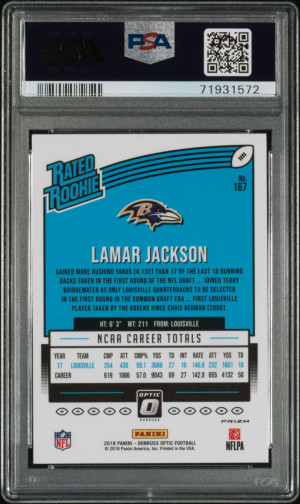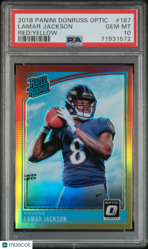 2018 Panini Optic Lamar Jackson #167 Red Yellow Short Print Rookie PSA 10