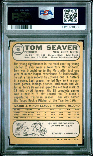 1968 Topps Tom Seaver RC#45 All Star Rookie PSA 2