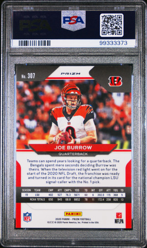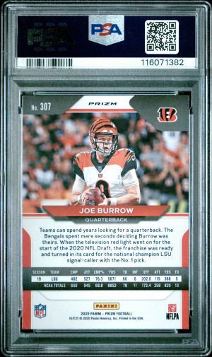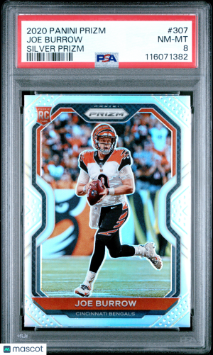 2020 Panini Prizm Joe Burrow #307 Silver Short Print Rookie PSA 8