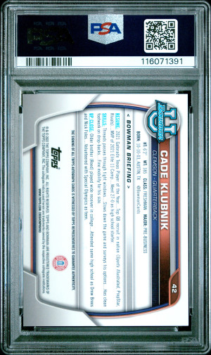 2022 Bowman U Chrome Prospects Cade Klubnik #42 Auto 1st Edition PSA 10