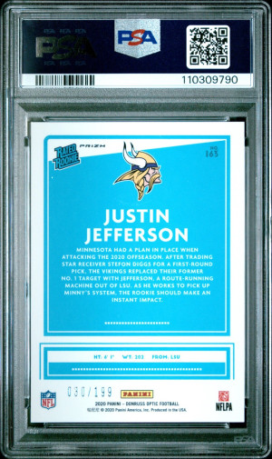 2020 Donruss Optic Justin Jefferson #163 Orange Short Print 30/199 Rookie PSA 9