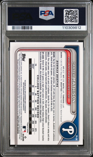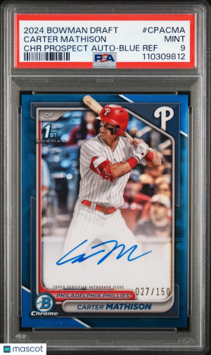2024 Bowman Draft 1st Carter Mathison Auto Blue Refractor #CPAMCA 27/150 PSA 9