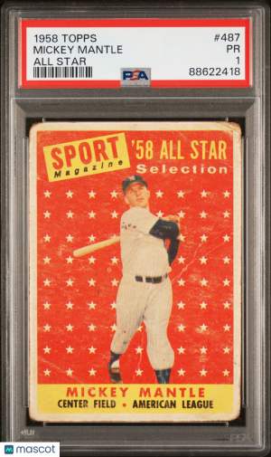 1958 Topps Mickey Mantle #487 All Star Vintage PSA 1