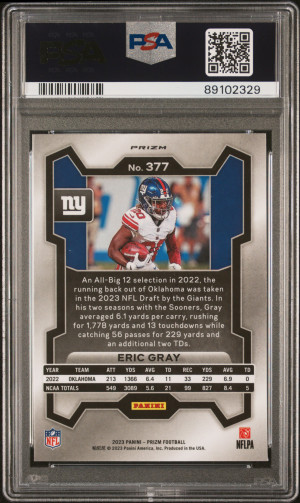 2023 Panini Prizm Eric Gray Rookie Lazer SP #377 PSA 10 Gem Mint