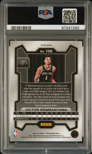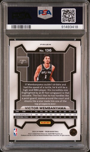 2023 Panini Prizm Victor Wembanyama #136 Silver Rookie Short Print PSA 10