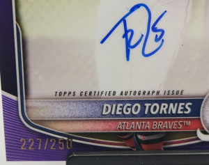2025 Bowman Chrome Diego Tornes #CPA-DT Purple Refractor Auto /250 Braves 1st