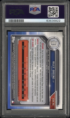 2019 Bowman Chrome Draft Riley Greene #CDA-RG Auto Refractor /499 PSA 10 Tigers