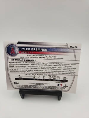 2025 Bowman Chrome Tyler Bremner 1st Auto CPA-TB Angels 2025 #2 Draft Pick RC