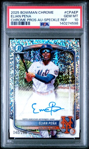 2025 Bowman Chrome Elian Pena CPA-EP 1st Auto Speckle Ref /299 PSA 10 Mets