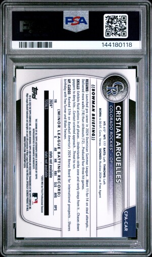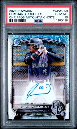 2025 Bowman Chrome Cristian Arguelles 1st Auto Mojo /150 PSA 10 Rockies