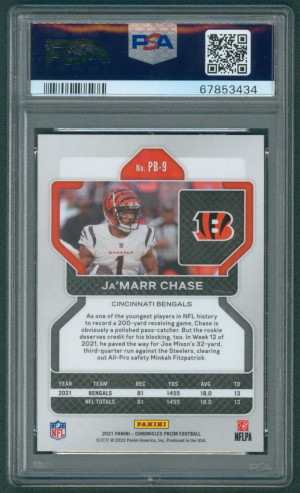 2021 Panini Chronicles Prizm Black Ja’marr Chase RC #PB-9 PSA 10 GEM MINT