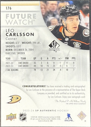 2023-24 SP Authentic Leo Carlsson Future Watch Auto /999