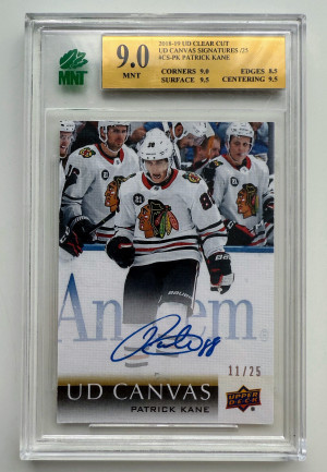 2018-19 UD CLEAR CUT CANVAS AUTO PATRICK KANE /25 MNT 9.0