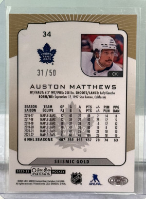 2022-23 OPC Platinum Seismic Gold /50 Auston Matthews