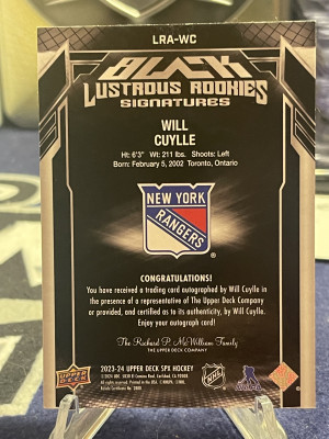 2023-24 Upper Deck SPX Black Lustrous Autograph Auto #WC Will Cuylle 111/199 RC