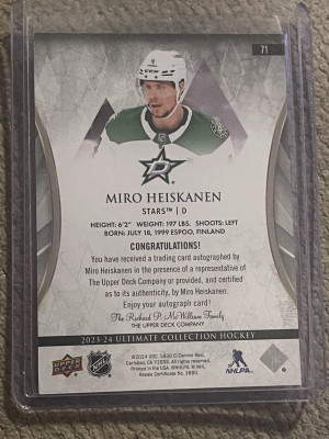 2023-24 Ultimate Collection Auto #71 Miro Heiskanen Dallas Stars