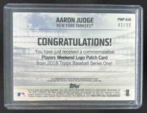 2018 Topps Aaron Judge Players Weekend Patch Blue 42/99 #PWP-AJU Yankees