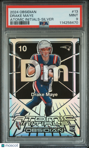 2024 Panini Obsidian Atomic Initials Drake Maye #13 Silver PSA 9